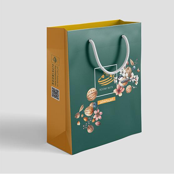ساک دستی کاغذی گلاسه با چاپ اختصاصی، مناسب بستهبندی آجیل و خشکبار